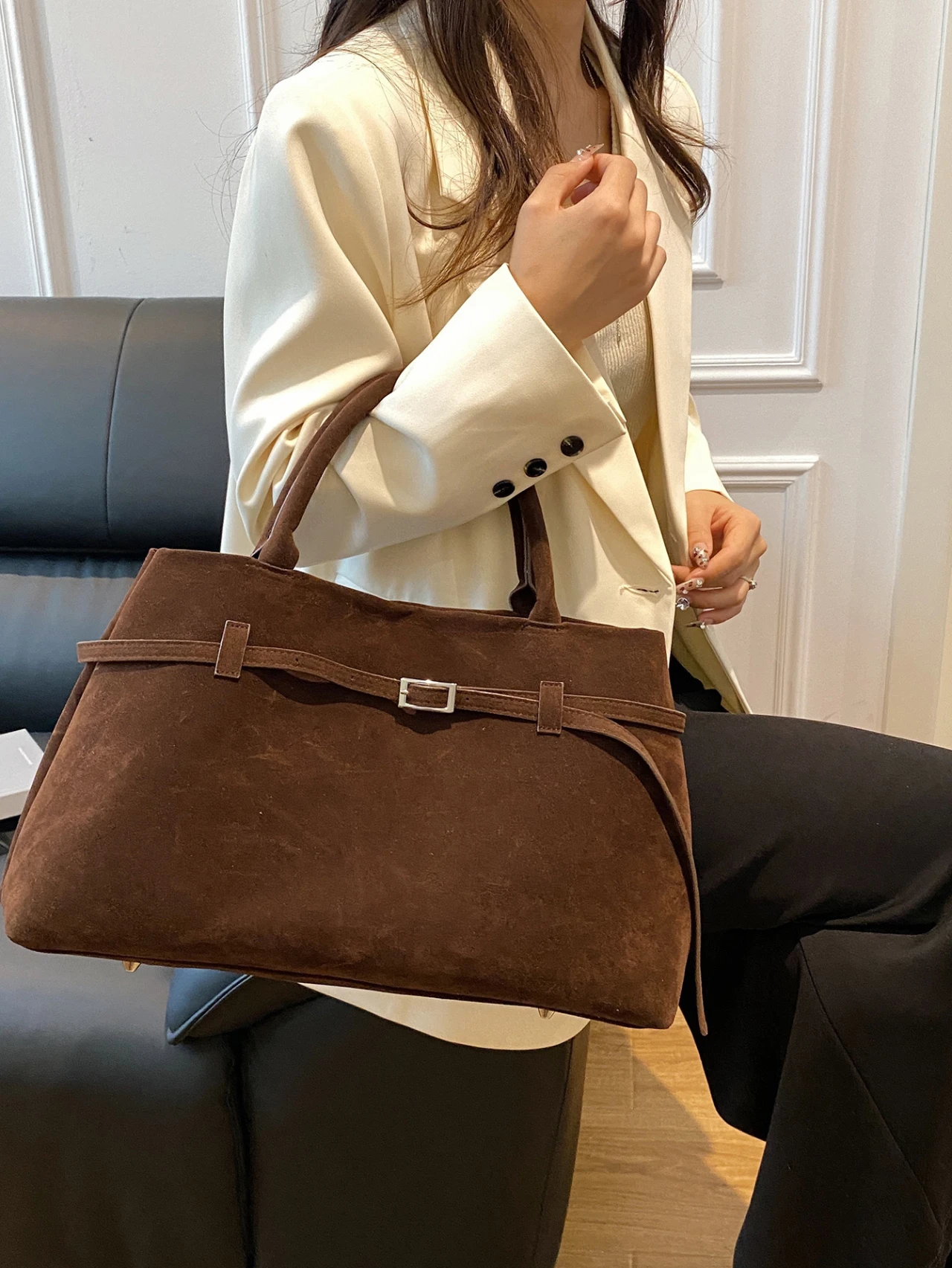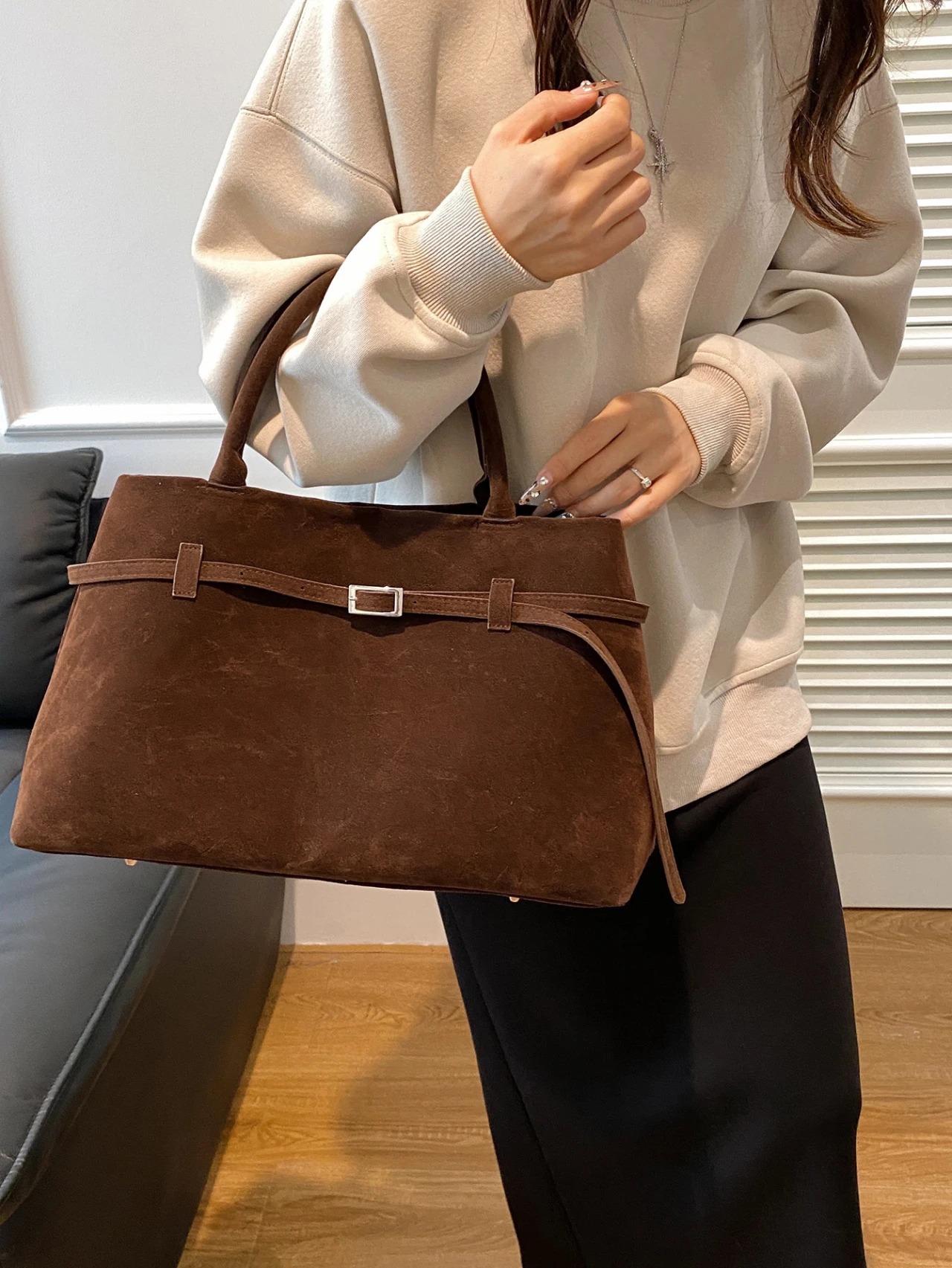 This handbag measures an ideal size for daily commutes, boasting dimensions that fit all your essentials without overwhelming your silhouette. Made from high-quality suede, it exudes a luxurious vibe while remaining versatile enough to accompany you from casual brunches to office meetings. The adjustable shoulder strap offers the convenience of a crossbody style or the refinement of a single shoulder carry, adapting to whatever the day might bring.